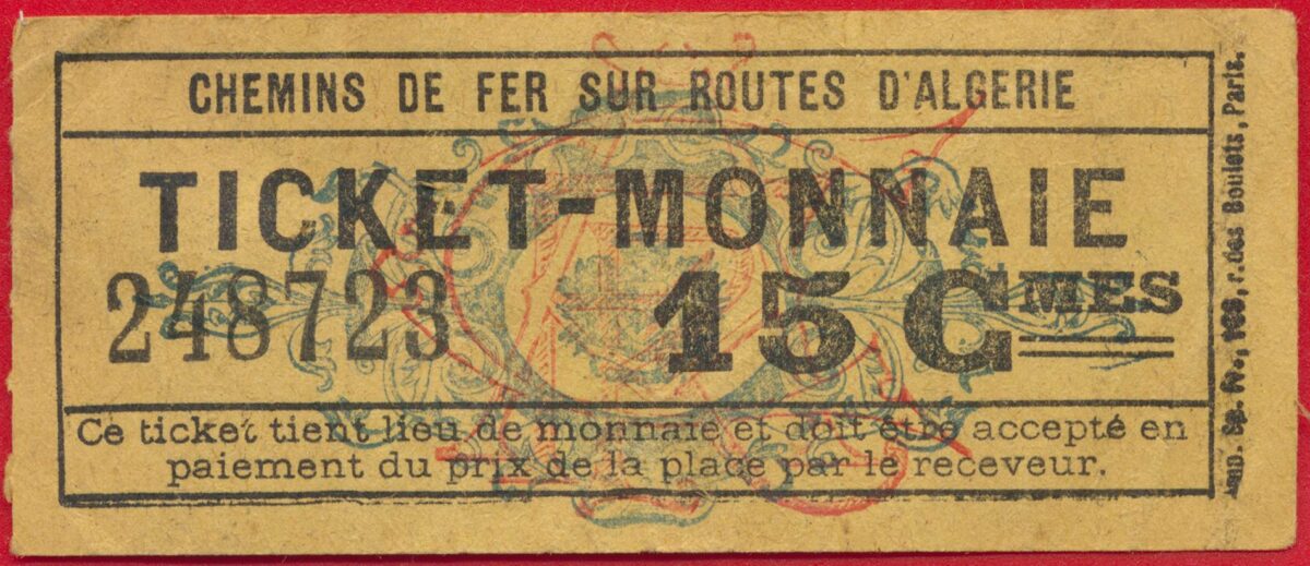 ALGÉRIE – Ticket-Monnaie – 15 Centimes