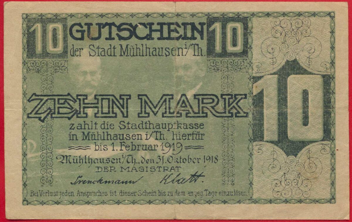 ALLEMAGNE – Mühlausen i/Th – 10 Mark – 1918