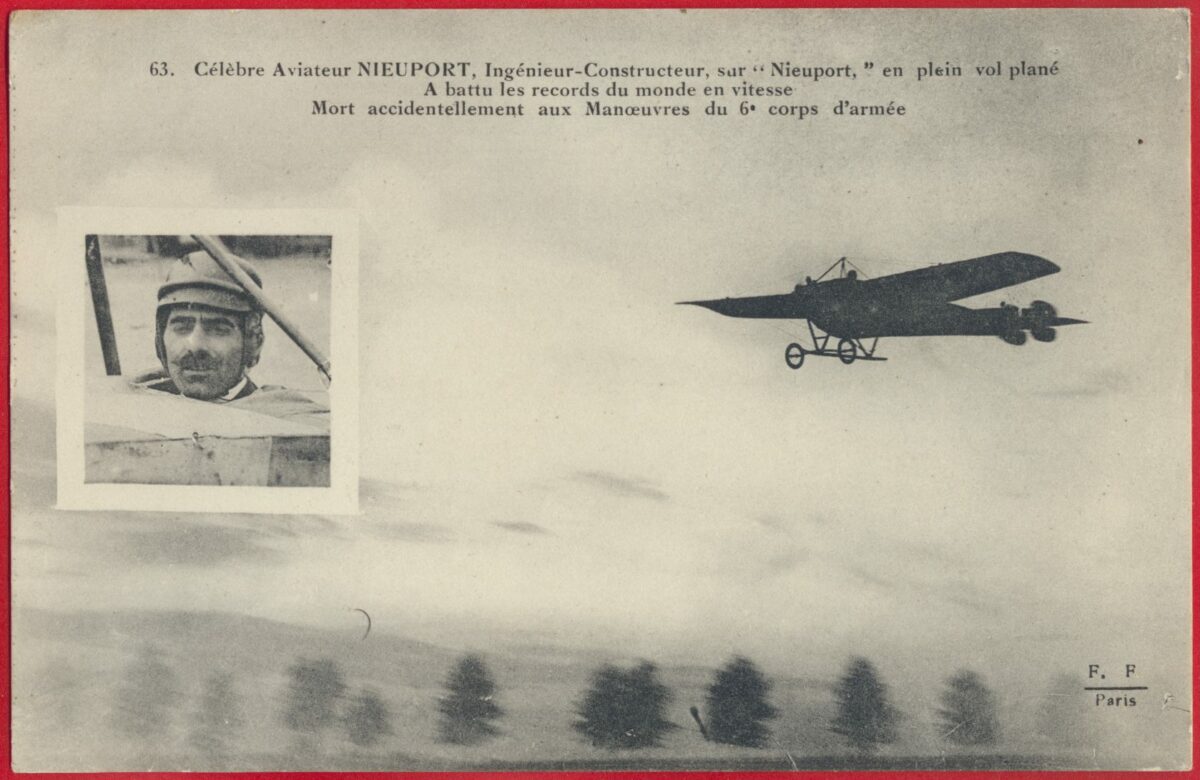 63 – Célèbre Aviateur NIEUPORT, Ingénieur-Constructeur, sur « Nieuport, » en plein vol plané.