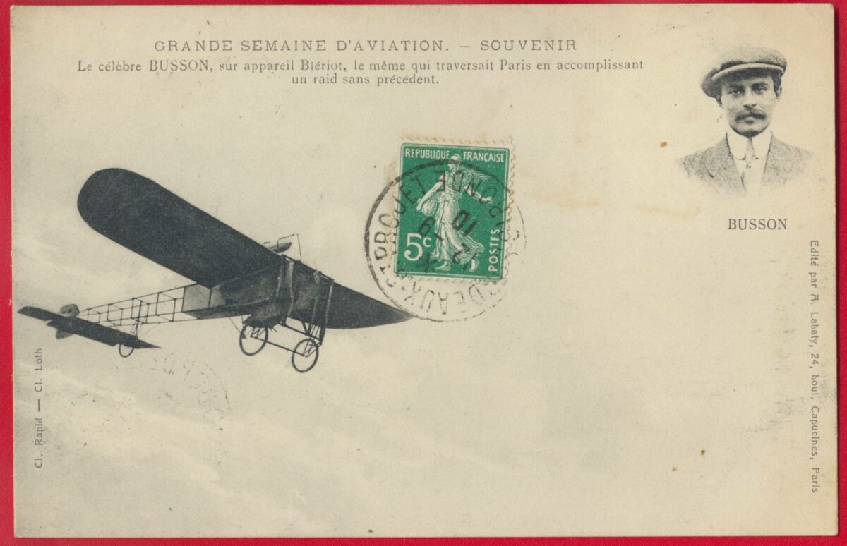 Le célèbre BUSSoN, sur l’appareil Blériot, le même qui traversait Paris en accomplissant un raid sans précédent.