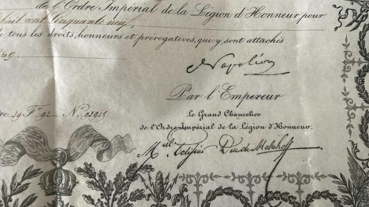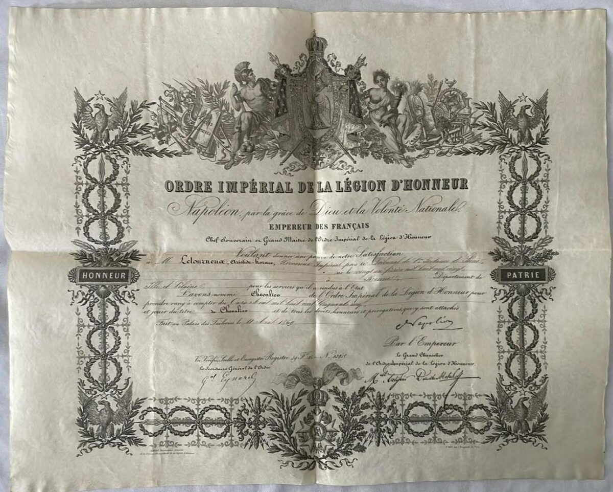 Napoléon III – Brever de Chevalier – Légion d’Honneur – 1859