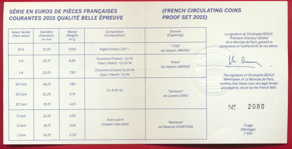 FRANCE – Coffret BE Euro 2015
