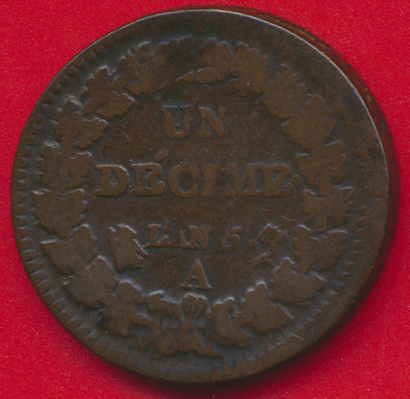 Soyez le premier à donner votre avis sur “Directoire – Un Décime surfrappe de 2 Décimes – An 5 – A”