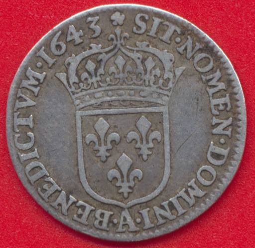 LOUIS XIII – 1/12 Ecu Deuxième poinçon de Warin – 1643 A