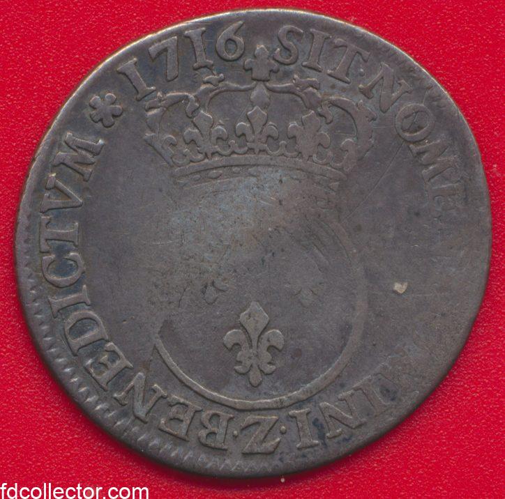 LOUIS XV – 1/4 Ecu Vertugadin – 1716 – Z