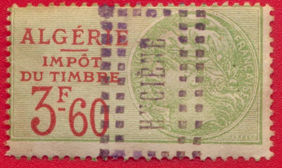 ALGÉRIE – Impôt du Timbre – 3 Francs 60