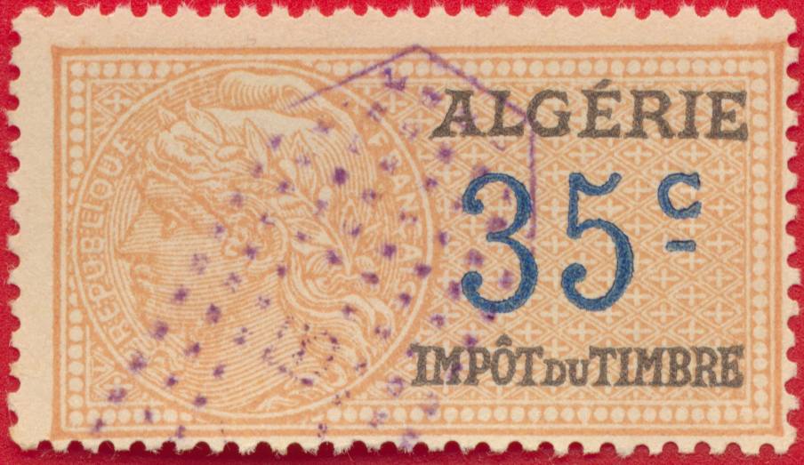 ALGÉRIE – Impôt du Timbre – 35 Centimes
