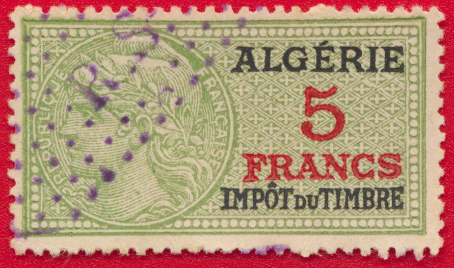 ALGÉRIE – Impôt du Timbre – 5 Francs