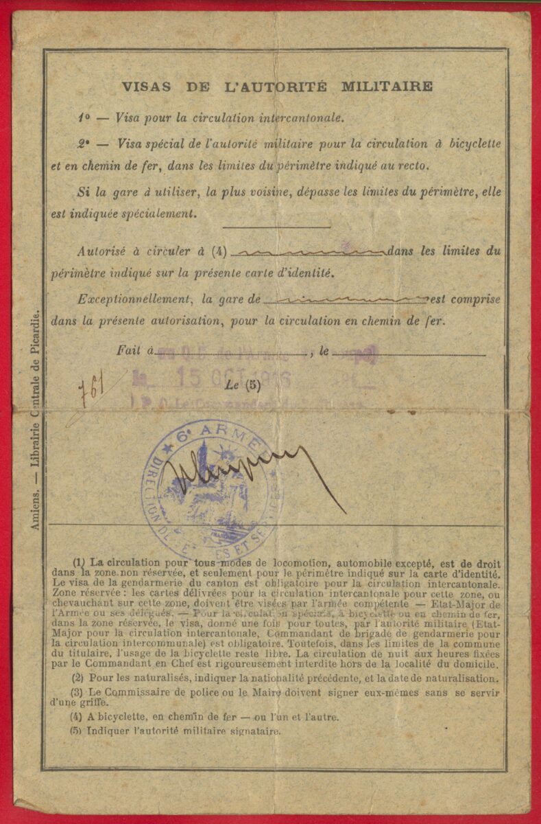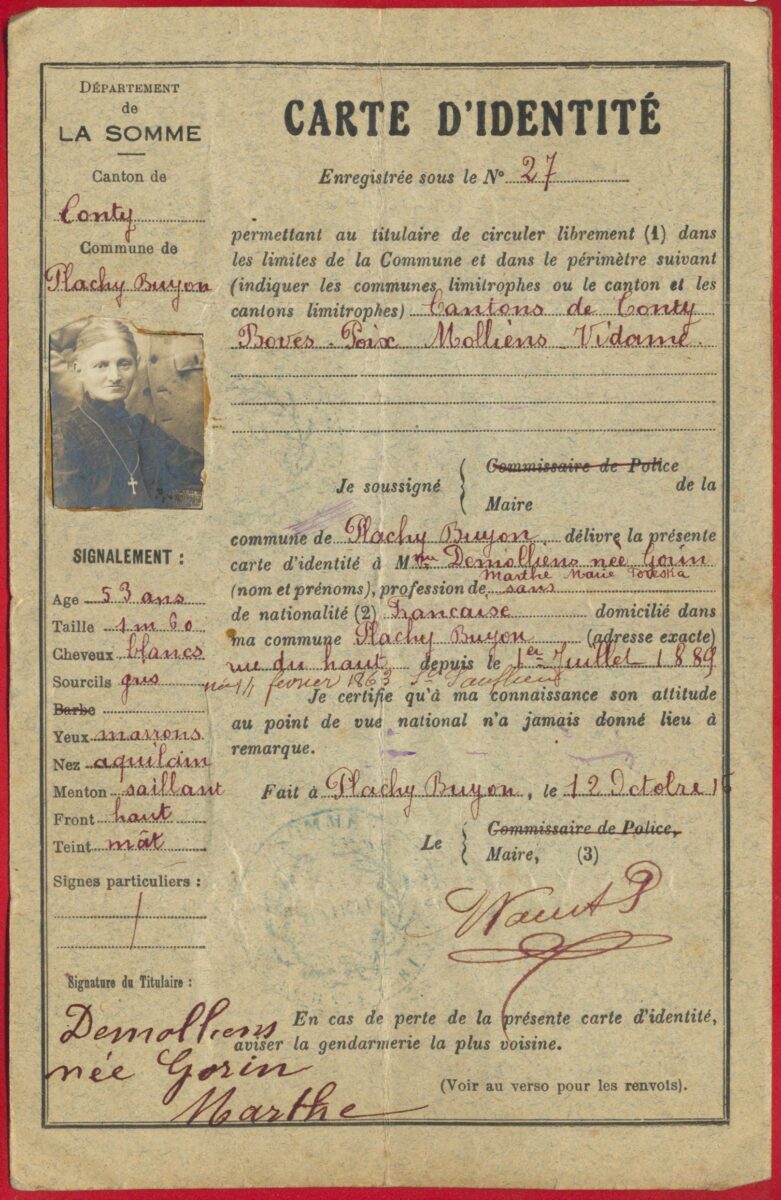 Carte d’identité – Somme – 1916