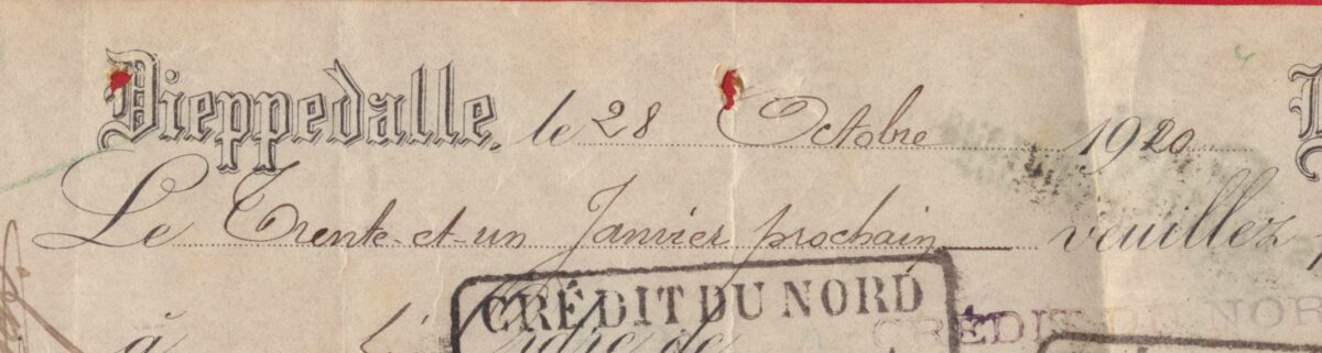 SUR DOCUMENT : DIEPPEDALLE , 28-10-1920