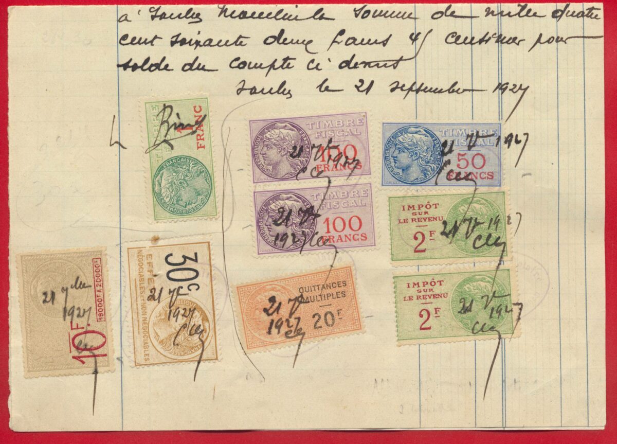 TIMBRE FISCAL – 1 FRANC, 50 FRANCS & 100 FRANCS