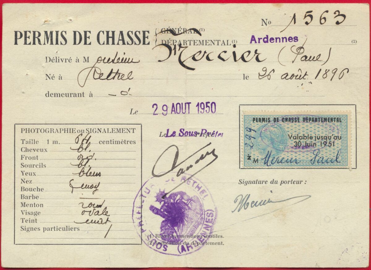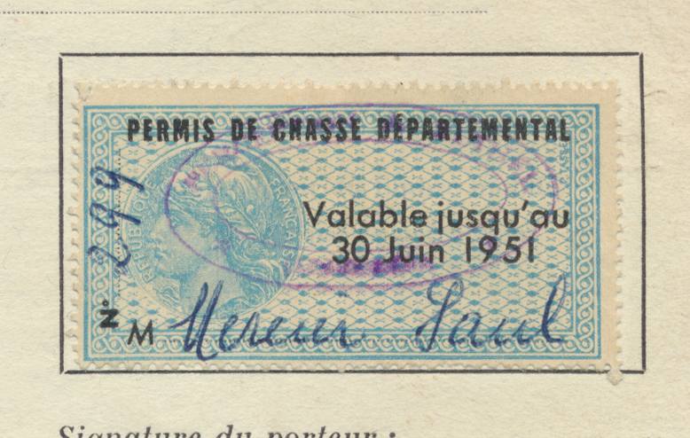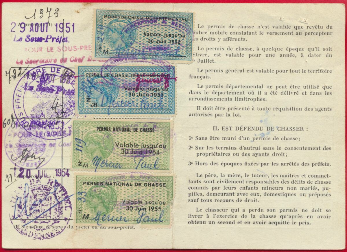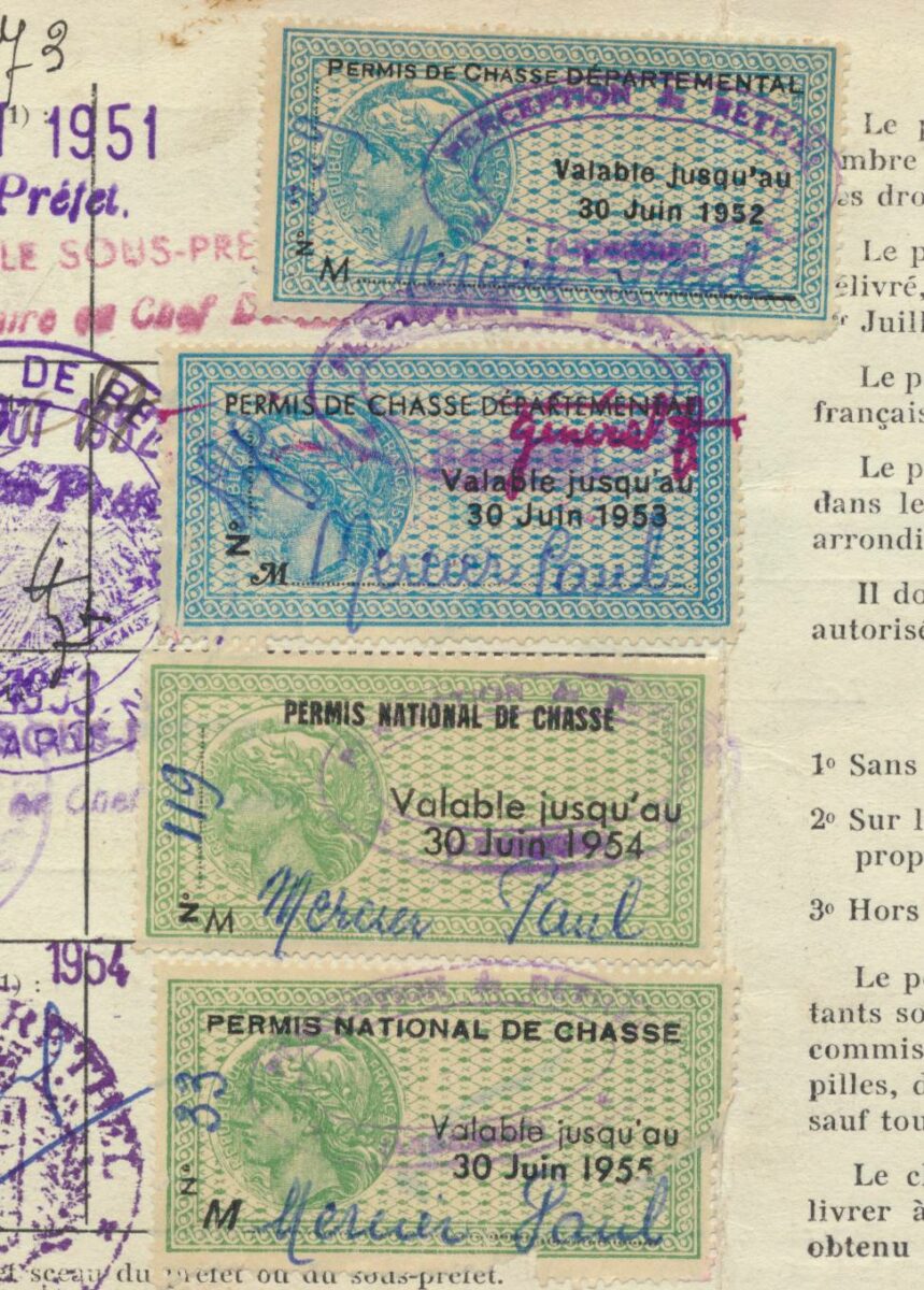 PERMIS DE CHASSE DÉPARTEMENTAL 1951, 1952 et 1953