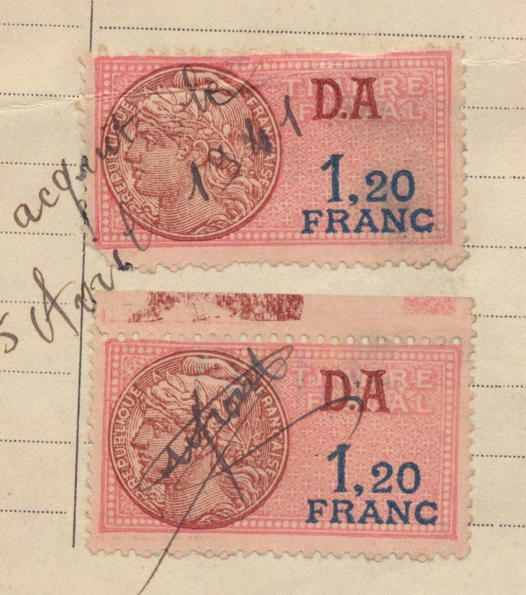 Soyez le premier à donner votre avis sur “TIMBRE FISCAL – DA – 1,20 Franc”